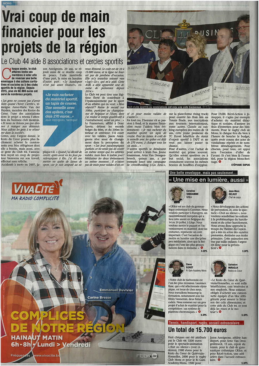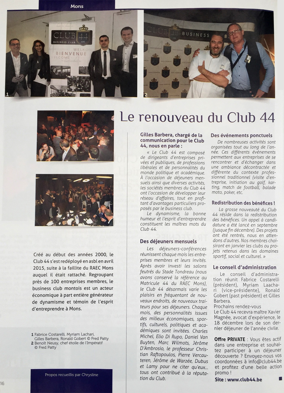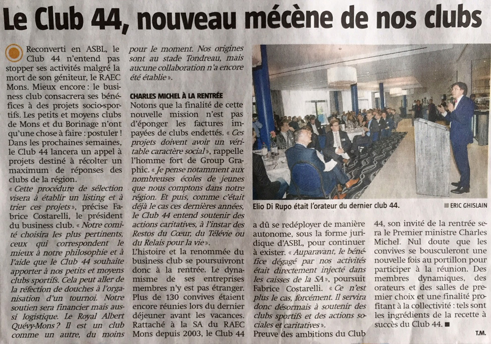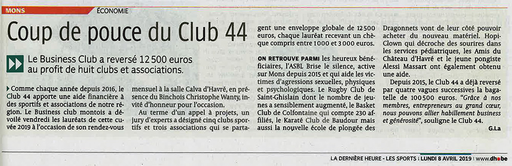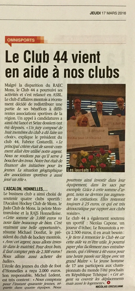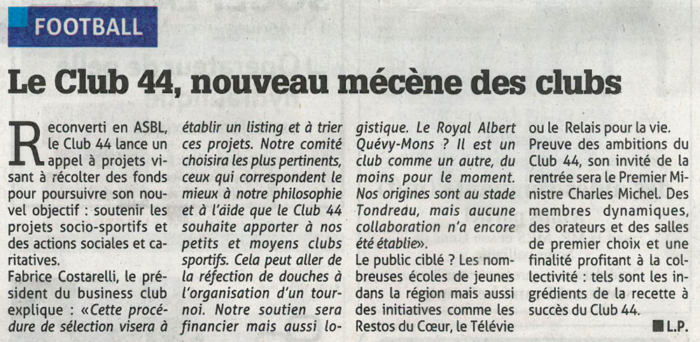 Découvrez ci-après un panel d’articles de presse relatant les activités du Club 44 :