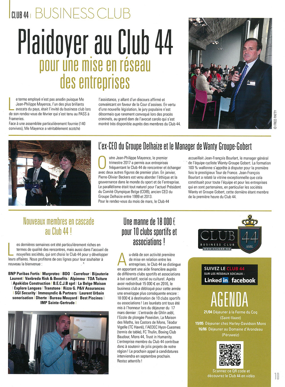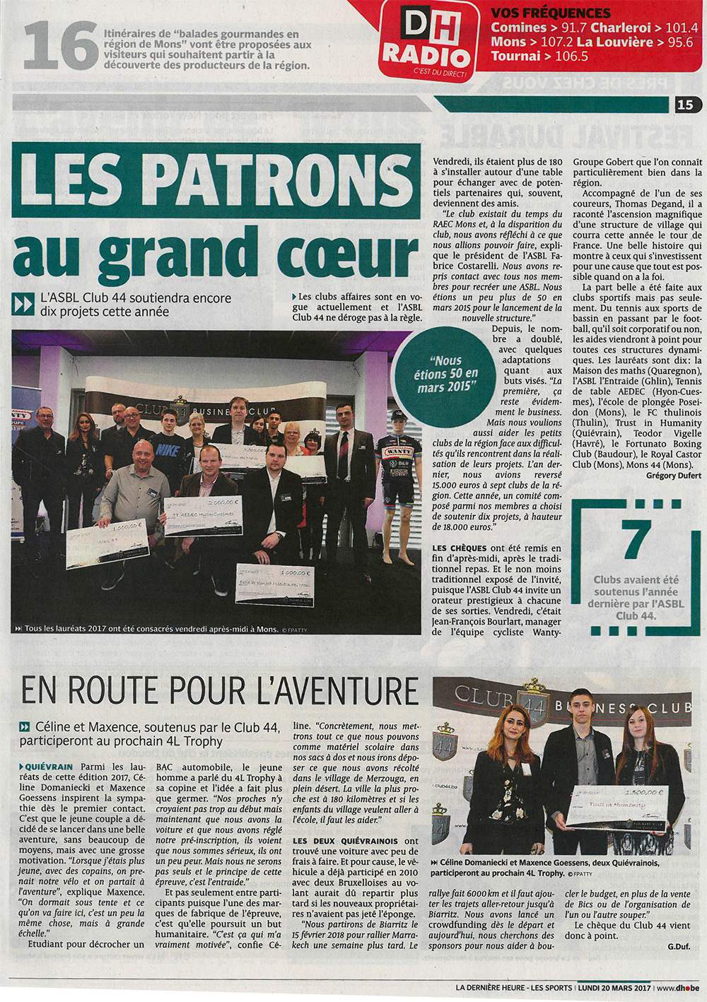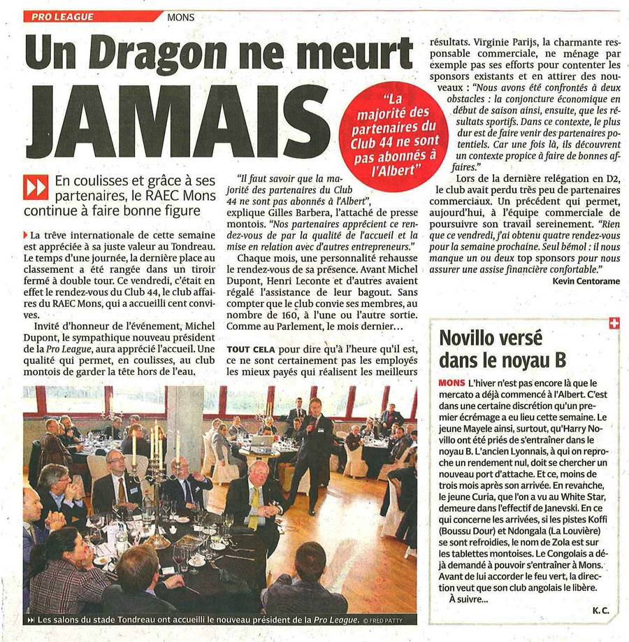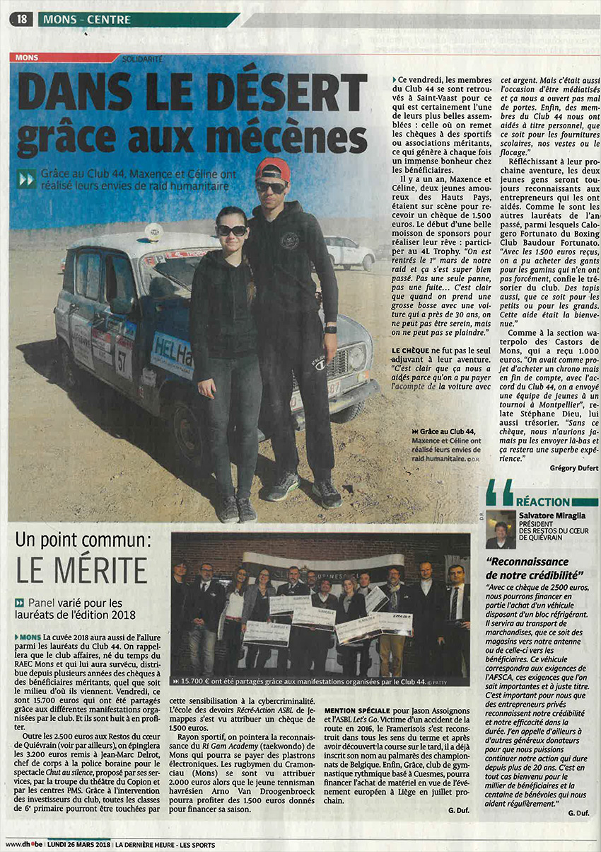 Découvrez ci-après un panel d’articles de presse relatant les activités du Club 44 :